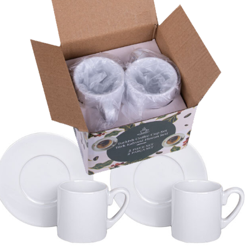 Toptan Porselen Türk Kahvesi Fincanı (2'li set) + Karton kutu + Tasarım + Baskı (